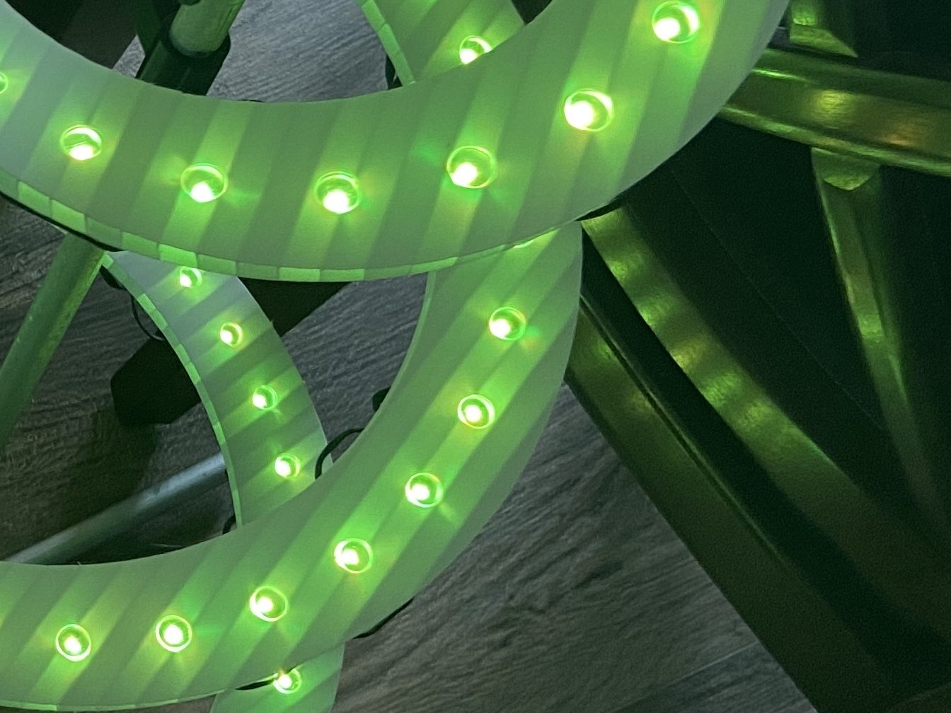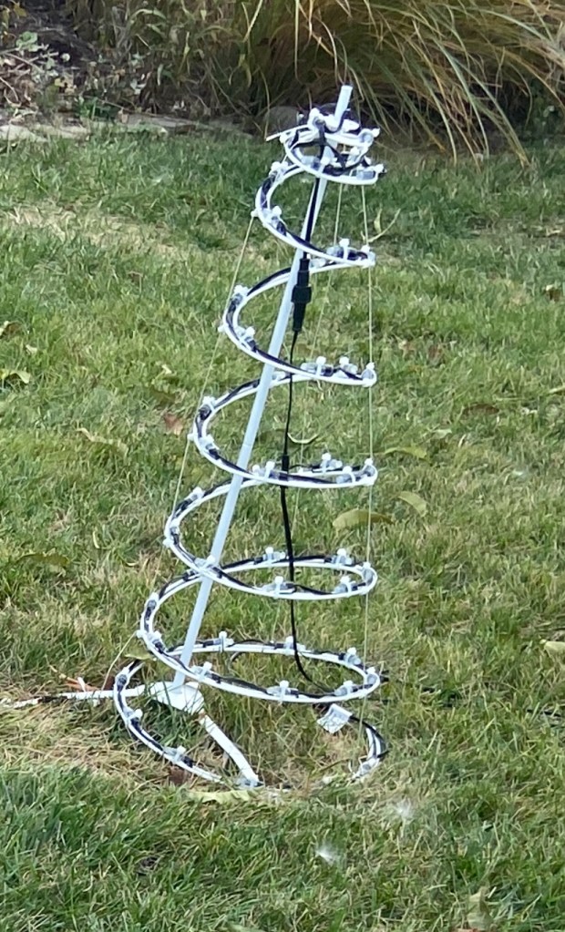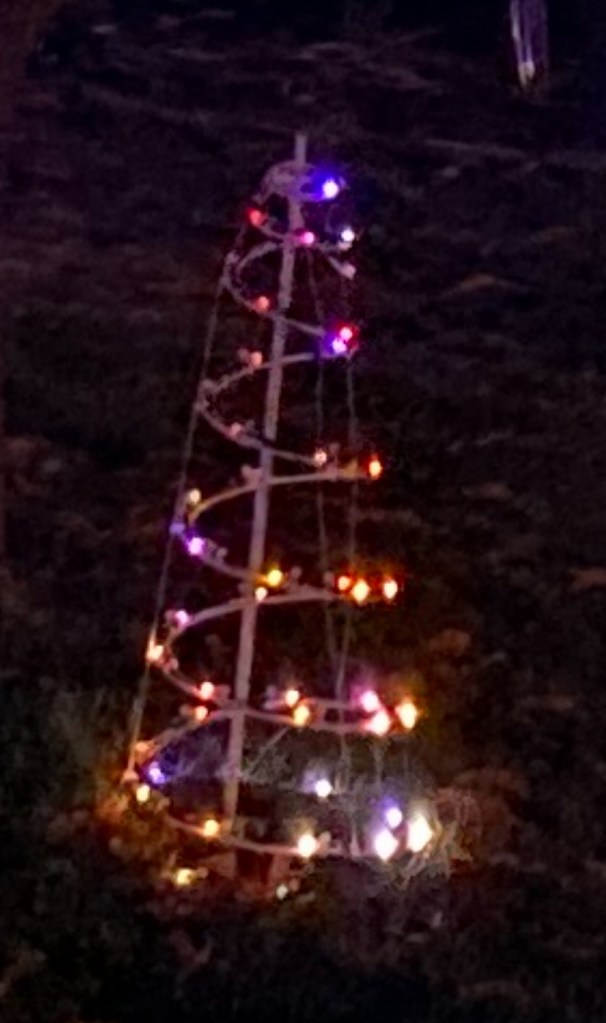 The old spiral trees (pictured below) which were repurposed decorations had an issue with the lights only being visible when they faced your direction as they spiraled up the tree. That, and there were only about 50 lights for each tree.